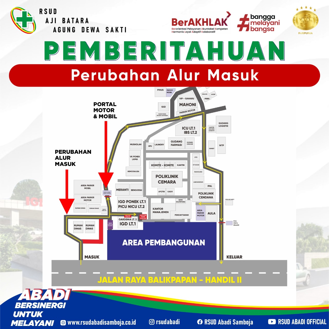 | Keterangan | Informasi Perpindahan Jalur Masuk RSUD Aji Batara Agung Dewa Sakti |